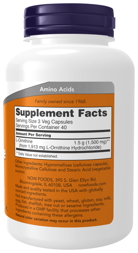 Орнитин - это заменимая аминокислота, которая участвует в цикле мочевины, помогая выводить аммиак, побочный продукт белкового обмена, вместе с аргинином и цитруллином. Он также превращается в аргинин, поддерживая его уровень в организме.